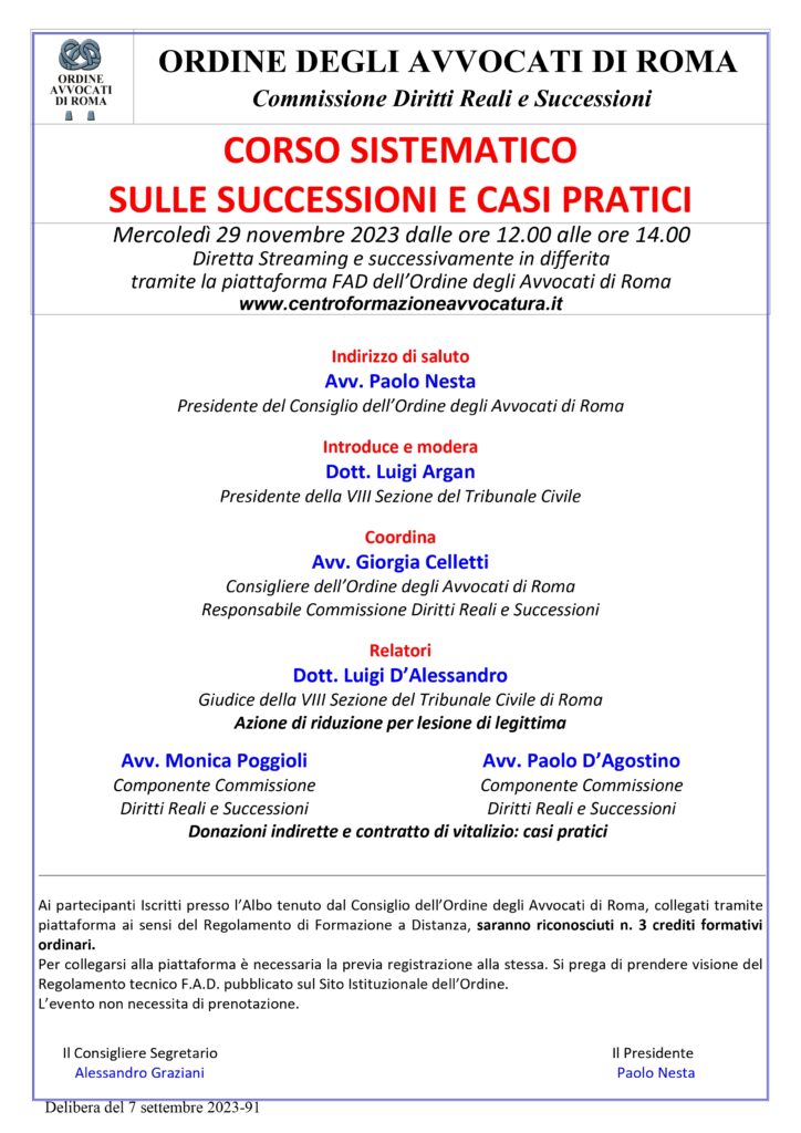Membro della Commissione Donazioni e Successioni presso L’Ordine degli Avvocati di Roma