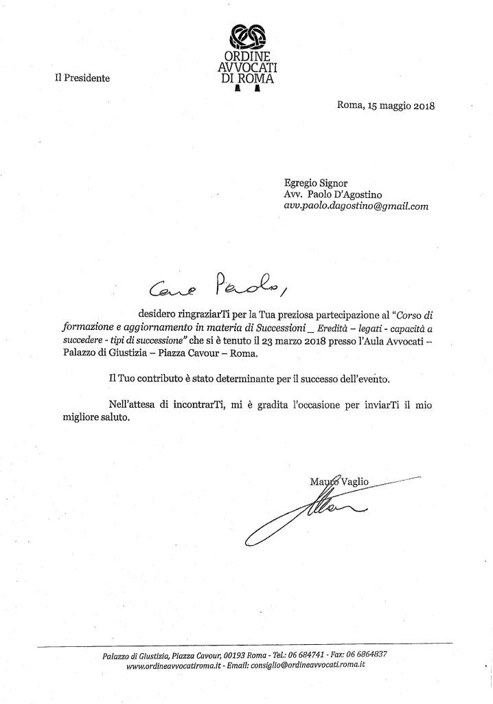 Il 15 maggio 2018 ha segnato una data importante per la comunità legale romana e, in particolare, per noi che ci occupiamo di diritto successorio. In quella giornata, ho avuto l’onore di partecipare come relatore a un convegno di rilevanza nazionale, promosso dall’Ordine degli Avvocati di Roma, dedicato a due temi cruciali del nostro ambito: la capacità a succedere e i legati testamentari.